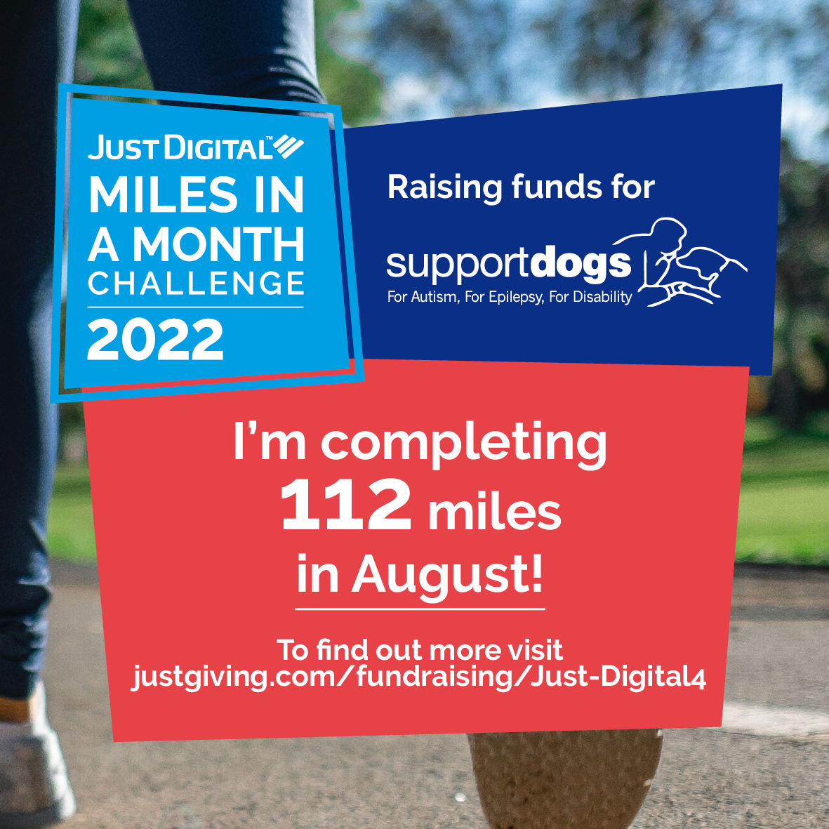 August saw 35 members of our JD team pledge to complete 112 people-powered miles each in just one month. 112 miles is the distance between JD and Support Dogs’ head office, and the miles could be travelled by walking, running, swimming, biking or even paddle boarding or surfing!